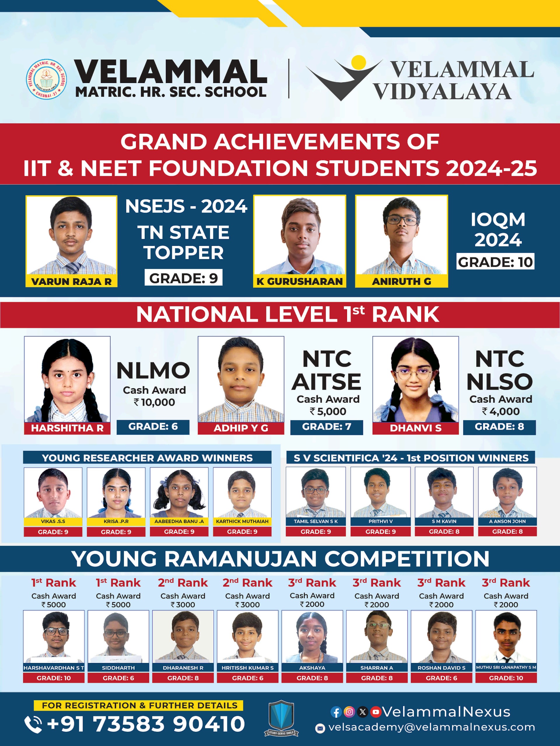 Established in 2016, VELAMMAL IIT & Medical, the premier coaching institute has been producing tremendous results in JEE Advanced, JEE Main, BITSAT, NEET etc.